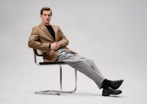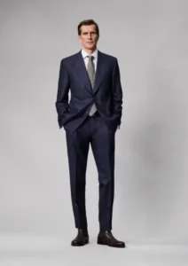 A kollekció összesen hat gondosan kiválasztott és összehangolt terméket tartalmaz: egy gyapjú és kasmír keverékből készült öltönyt, egy gyapjúból és kasmírból készült zakót, egy kabátot és egy flanelnadrágot a CARL GROSS-tól, valamint egy tökéletes fehér inget az OLYMP-től és egy finom kötött pulóvert a MAERZ Muenchen-től.