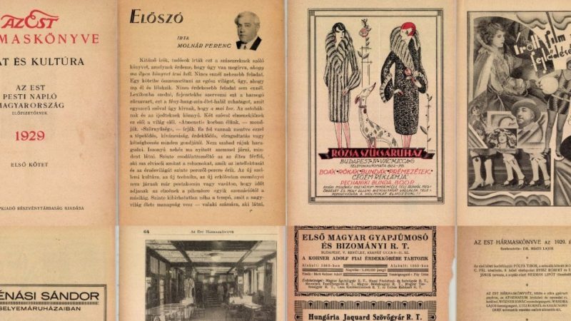 A közelmúltban régi családi dokumentumok keresésére vállalkoztam. Meglepődtem, mennyi anyag van jó minőségben, kereshetően archiválva az arcanum adatbázisban, milyen sok mindent lehet már online is keresni. Persze a divat szóra is rá-ránézegettem. Találtam 1859-es Hölgyfutárt, 1876-ból DIVAT-NEFELJTS-et, Egyesült szépirodalmi és divatközlönyt. És ráleltem az 1929-ben megjelent EST hármaskönyv I. kötetére, amelyben az Est, a Pesti Napló és a Magyarország előfizetői számára publikálták az ÍROTT FILM A DIVATRÓL című kiadványt Molnár Ferenc előszavával: