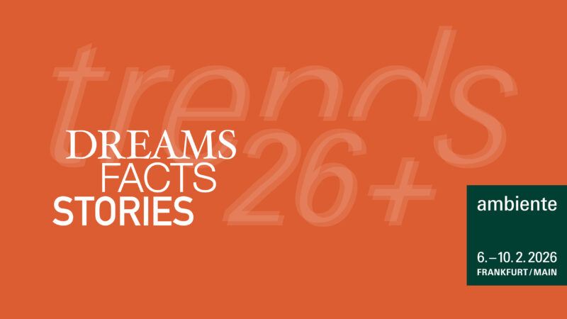 Az Álmok, Tények, Történetek témák mentén az Ambiente Trends 26+ egyesíti a három stílusvilágot – brave, light és solid – amelyek az Ambiente 2026 Trend Area területén kelnek életre.
