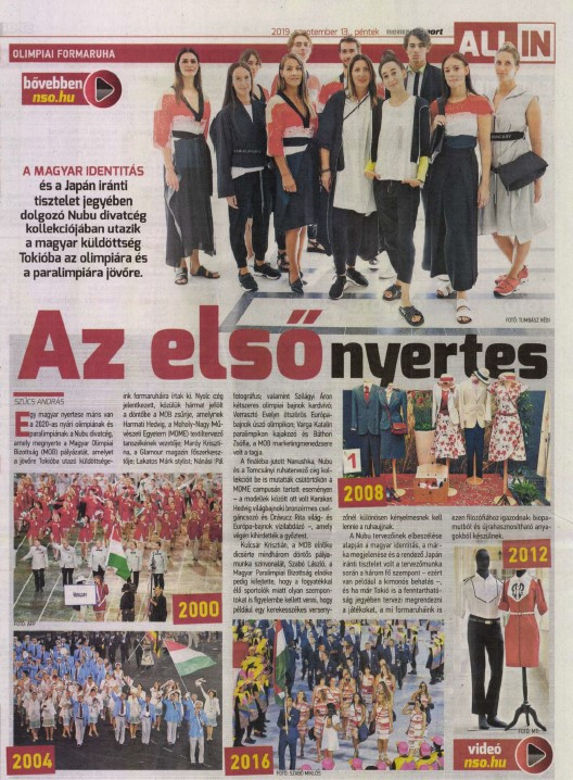 A NUBU divatcég formaruháit viselik a magyar olimpikonok és paralimpikonok a jövő évi, tokiói játékokon. Az eredményhirdetéssel egybekötött sajtótájékoztatón Kulcsár Krisztán, a Magyar Olimpiai Bizottság elnöke hangsúlyozta, hogy a formaruhák határozzák meg a sportolói küldöttség arculatát, és kiemelte, hogy a nyolc pályázó, illetve a közülük kiemelt három „döntős” márka rendkívül színvonalas kollekciót mutatott be.